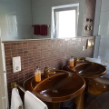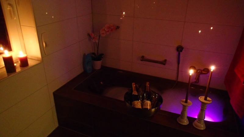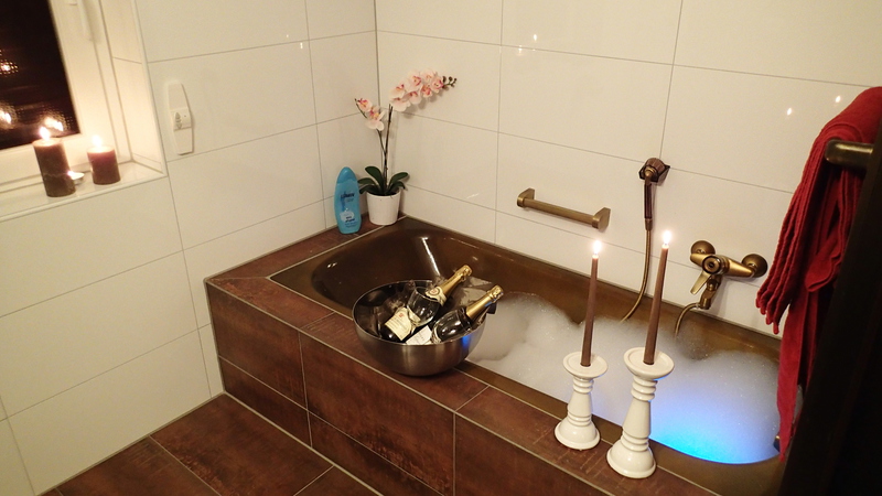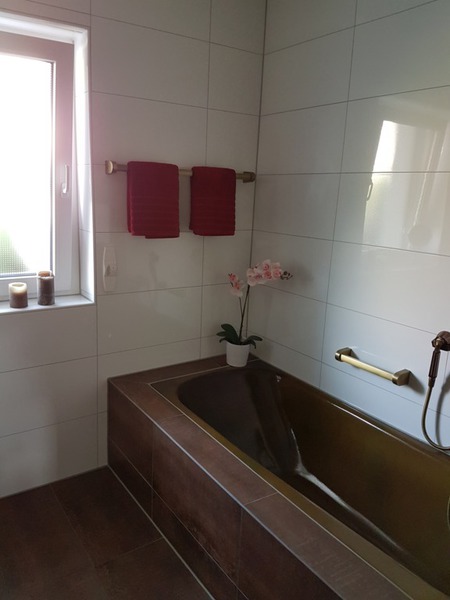 Im schönen, hellen Bad mit großem Fenster lässt sich ein Tag gut beginnen oder bei der stimmungsvollen Beleuchtung (Unterwasserlicht!) in der Badewanne exzellent beenden!