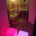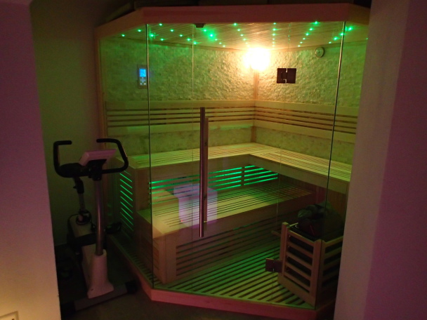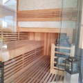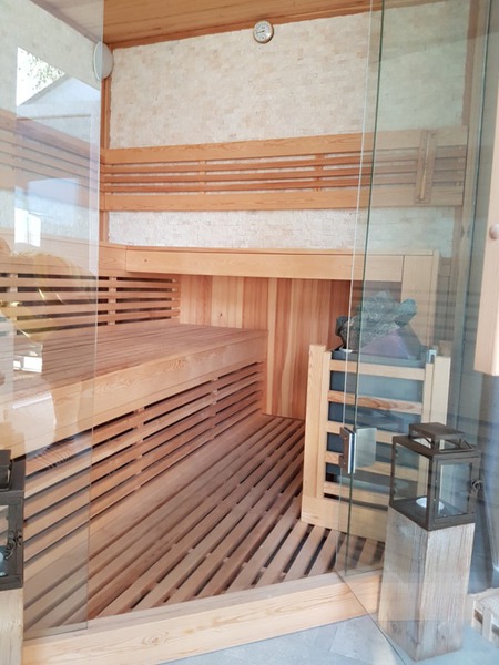 Die neue Panoramasauna mit großem Glaselement bietet eine unvergleichliche Aussicht nach draußen während Sie Ihren Saunagang genießen!