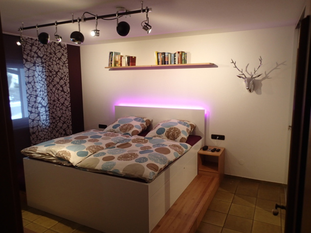 Auch hier haben wir Designerleuchten und eine extravagante Ambientebeleuchtung (RGB-Farblicht) für Sie installiert.