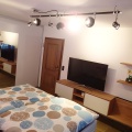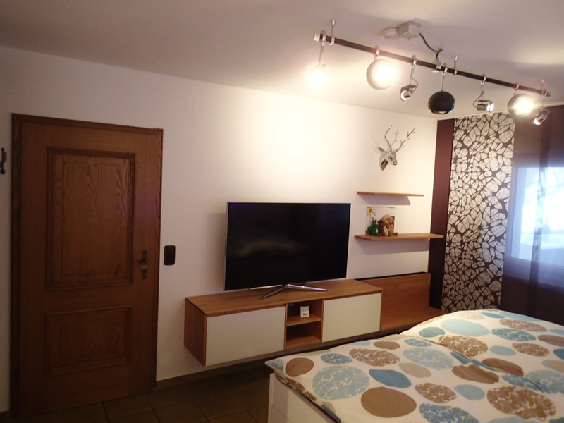 Alle Möbel bestehen aus Echtholz und es steht ein großer Schiebetürenschrank in weiss-hochglänzend mit Bodenspiegel zu Ihrer Verfügung.