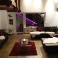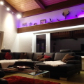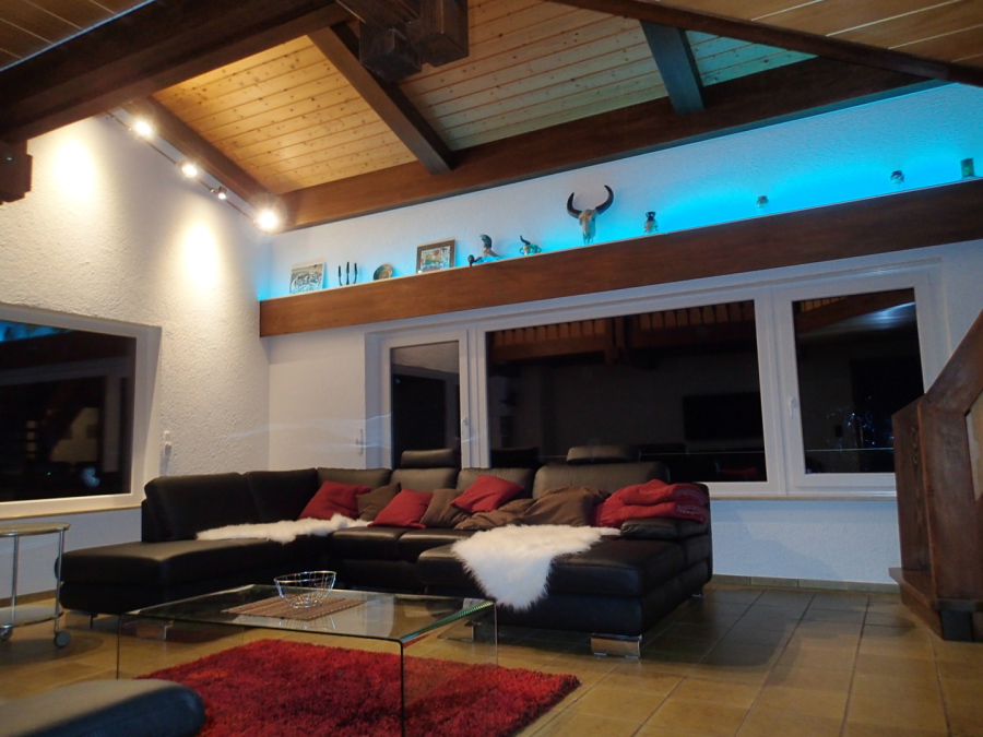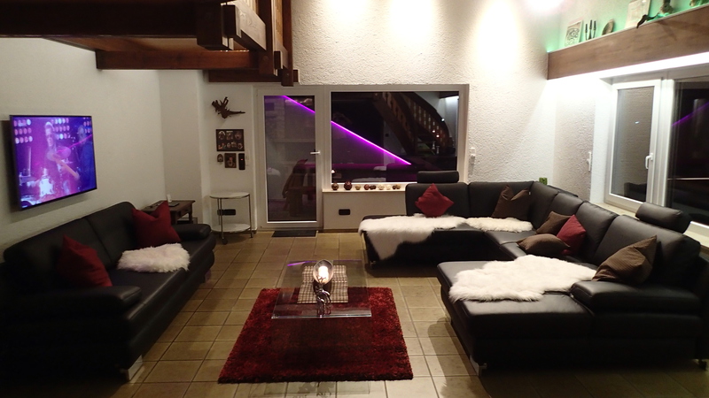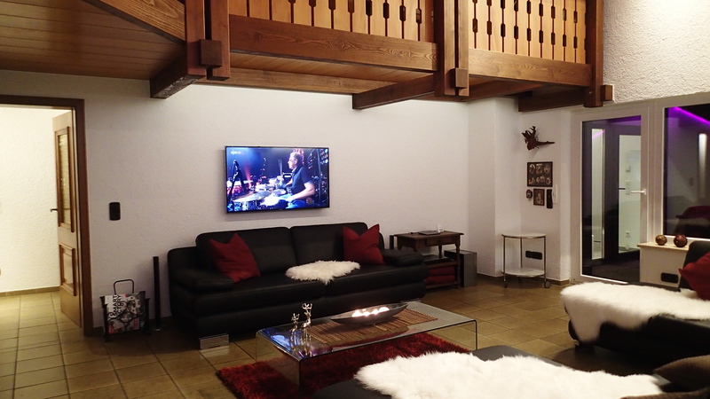 Wir laden Sie ein, den 48 Zoll Flatscreen mit HD Sat-TV zu nutzen und mit der angeschlossenen Hifi-Anlage zu genießen. Bringen Sie Ihren Lieblingsfilm auf DVD oder Bluray gerne mit! Schalten Sie dazu per Funkfernbedienung unsere aufwendige Ambientebeleuchtung (warmweiss + RGB-Farblicht) ein.