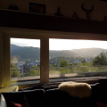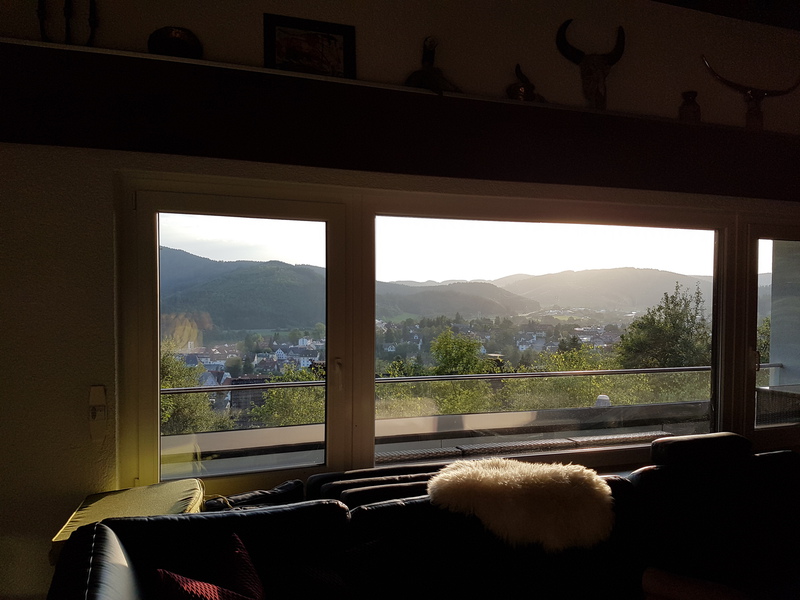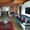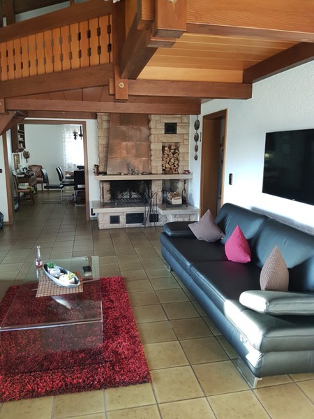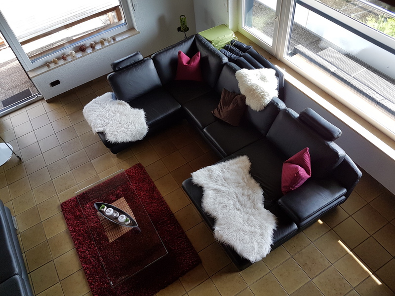 In dem riesigen Wohnzimmer steht eine große Lederwohnlandschaft (inkl. Ausziehbett). Das große Panoramafenster gibt den Blick frei über ein riesiges Tal mit herrlichem Panorama!