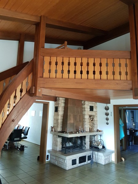 Über Wohnzimmer und Küche erreichen Sie den großen überdachten Balkon mit Zugang zum Saunaraum.